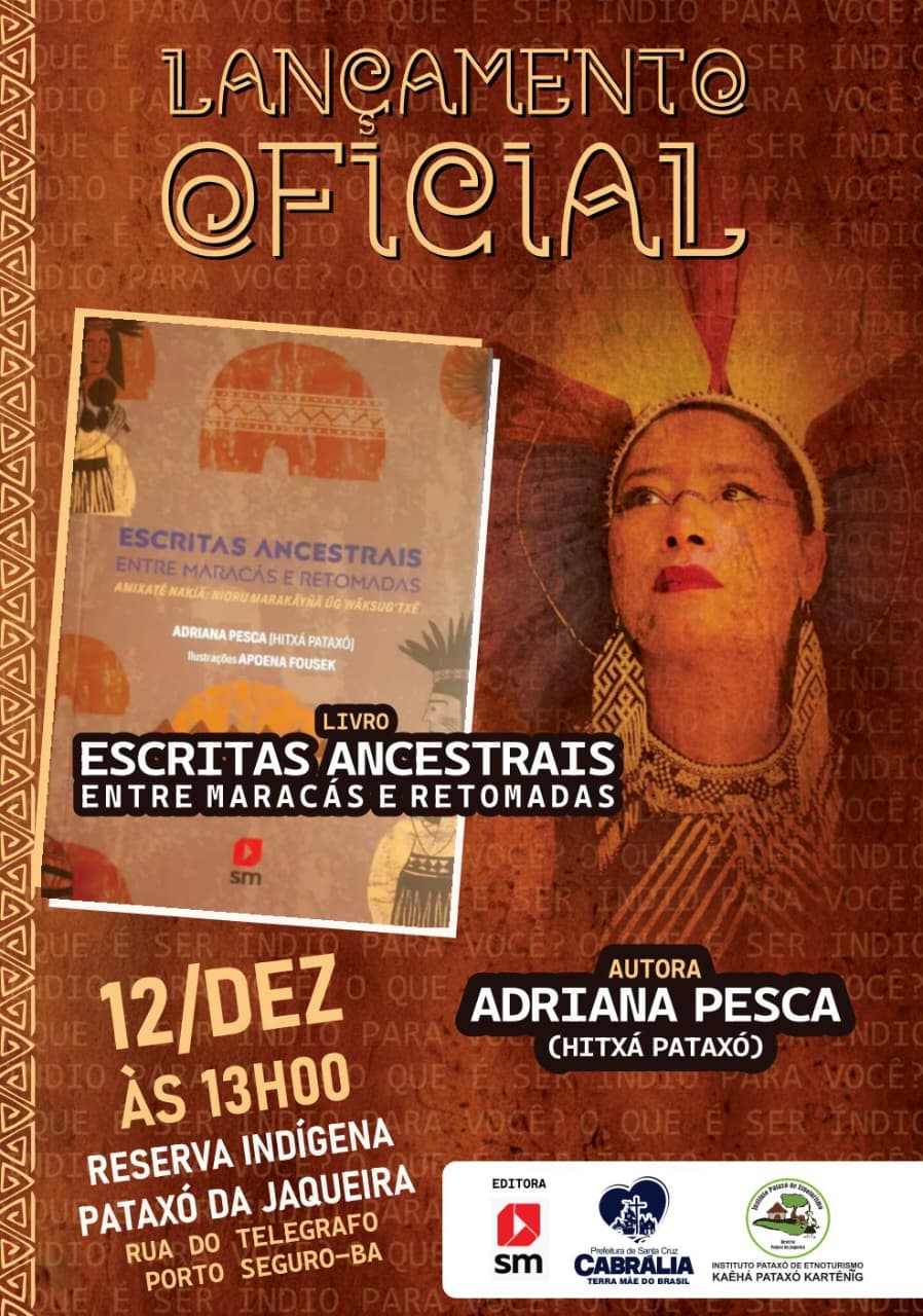 É isso que nos mostra a escritora indígena Adriana Pesca (Hitxá Pataxó) do Povo Pataxó, pertencente ao Território Indígena de Coroa Vermelha, Santa Cruz Cabrália, em seu livro Escritas Ancestrais: Entre Maracás e retomadas, uma obra composta por 23 poemas divididos entre poesia-manifesto e poesia memória. Seu livro será lançado no dia 12 de dezembro, nesta sexta-feira, às 13:00, na Reserva Indígena Pataxó da Jaqueira. Um momento importante para o povo Pataxó e para a própria escritora, que nos convida a prestigiarmos essa obra que visa ser uma ferramenta pedagógica e de fortalecimento das culturas originárias nas escolas.